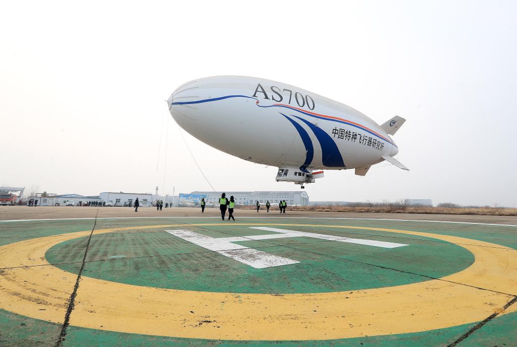 2025年2月21日,国产载人飞艇“祥云”AS700电动型AS700D在湖北荆门成功完成科研首飞,验证了技术成熟度和原理,为后续电动飞艇的研制及应用进行技术储备。新华社发(中国航空工业集团特种飞行器研究所供图)
