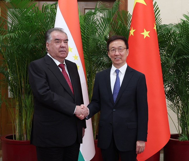 韩正会见塔吉克斯坦总统拉