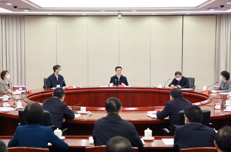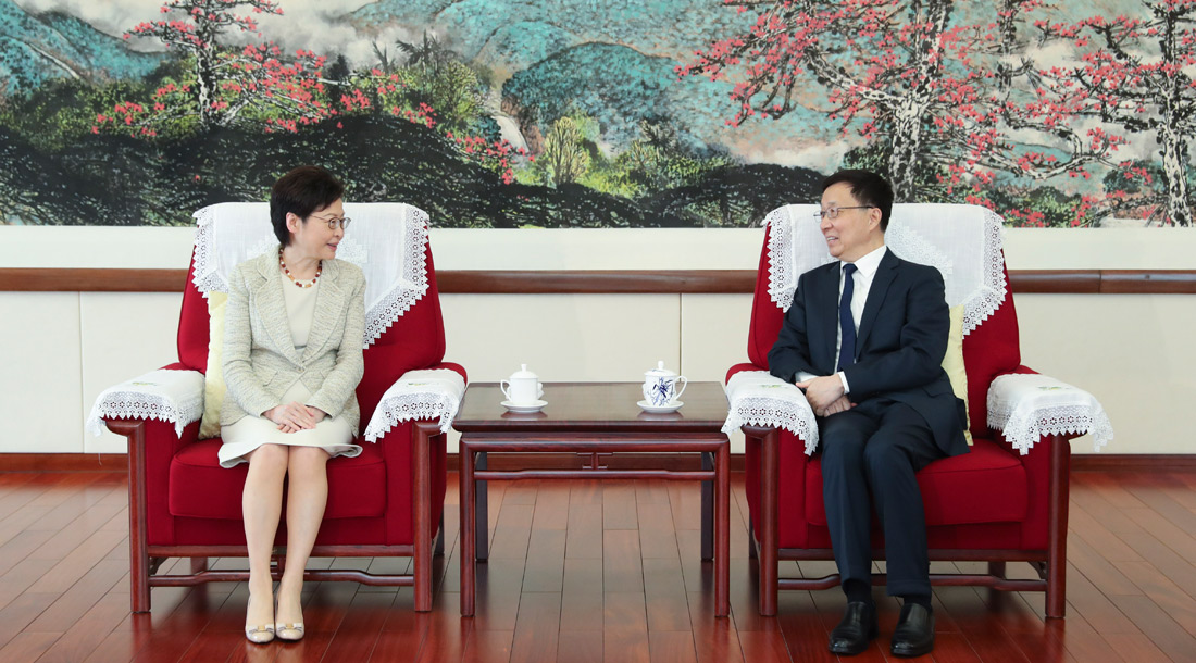 韩正会见林郑月娥、贺一诚
