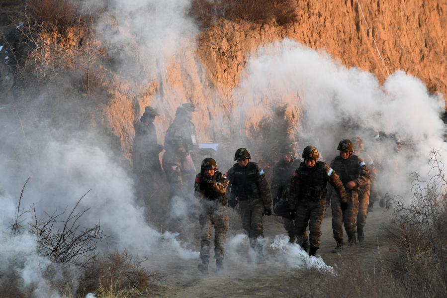 ■ 武警部队全面开展冬季大练兵活动提高实战化训练水平(2020年12月14日摄)。新华社发(孙玉山 摄)