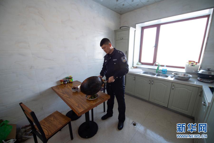 2021年1月9日,史先强在洛古河夫妻警务室做饭。新华社记者 谢剑飞 摄