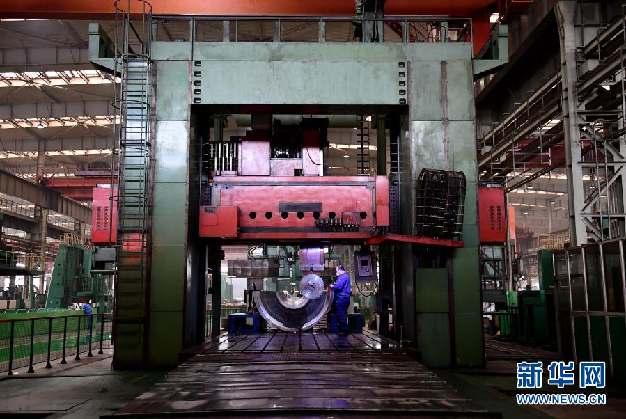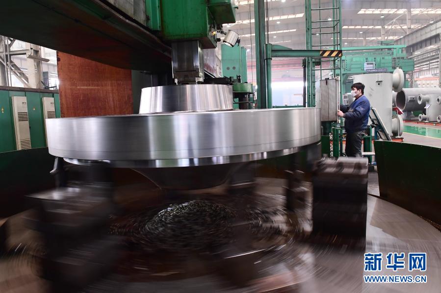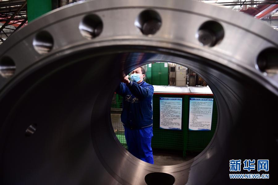 2020年2月10日,工人在沈阳鼓风机集团股份有限公司生产线上紧张工作。新华社发(沈鼓集团提供)