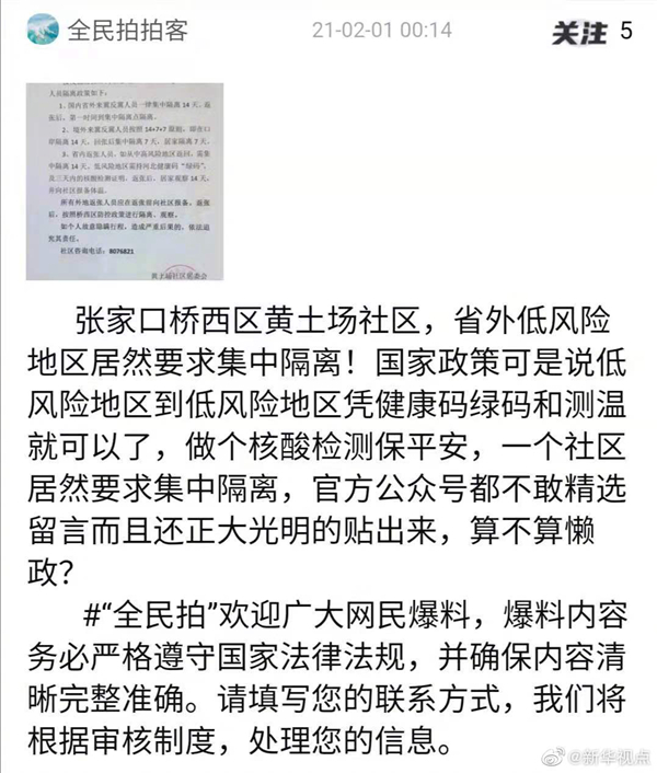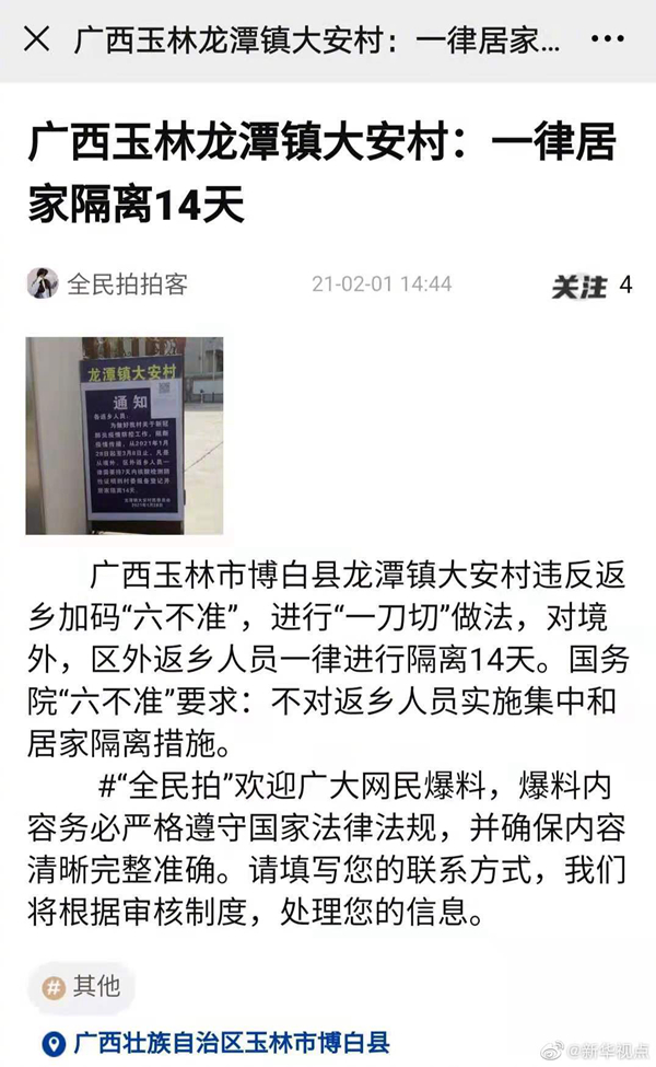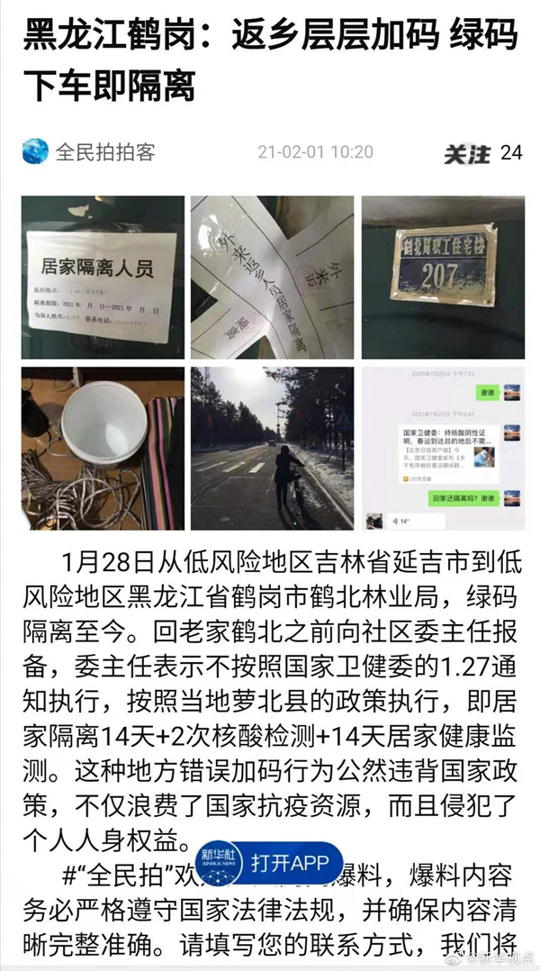 群众通过新华社客户端“全民拍”反映,这些地方还在防疫过程中存在违反“六不准”现象:广西玉林市博白县龙潭镇大安村,黑龙江省鹤岗市萝北县鹤北林业局,河北张家口桥西区黄土场社区。是否属实,请相关地方、部门尽快调查。