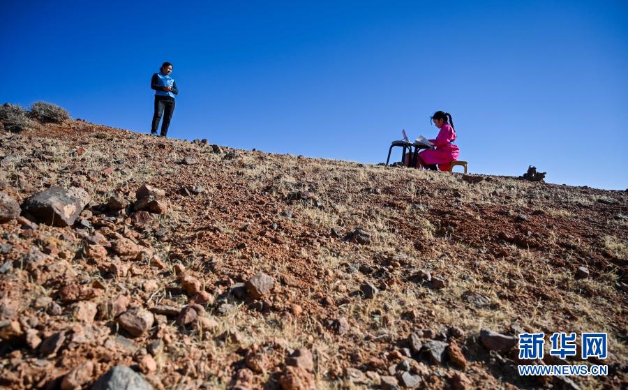 内蒙古阿拉善左旗戈壁深处的网课(新华社记者 连振 摄)
