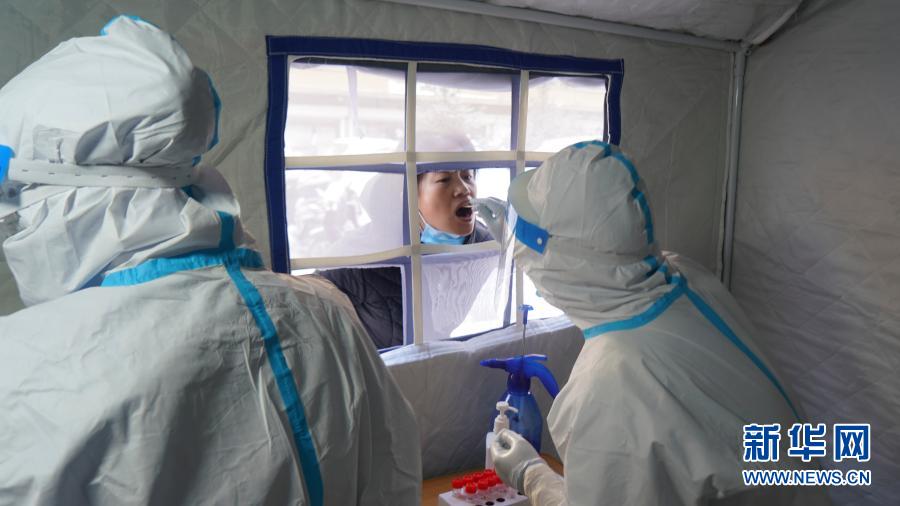 1月26日,工作人员在望奎县华腾园小区核酸采集点进行采样。新华社发