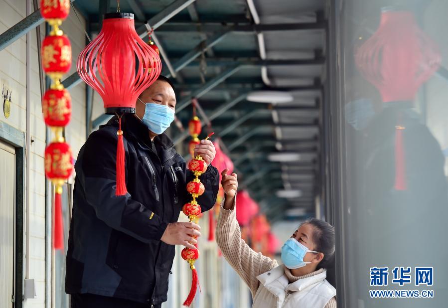在石家庄市新华区新干线旅游集团宿舍区,不能回家过年的司机李平良(左一)装扮宿舍,迎接新春佳节(2月5日摄)。新华社发(梁子栋 摄)