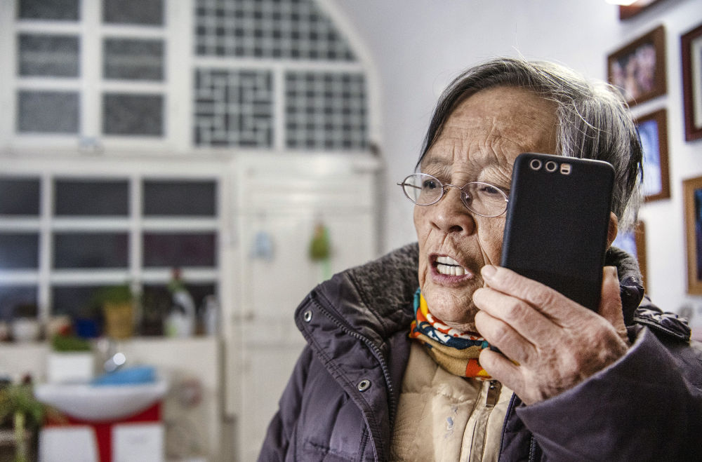 路生梅在佳县家中接电话为患者义诊(1月14日摄)。她的手机从不关机,被群众称为“路大夫热线”。新华社记者 陶明 摄
