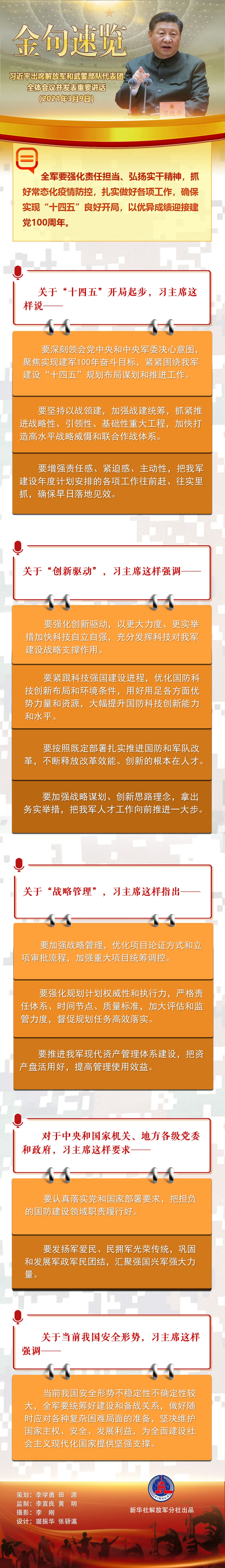 金句速览:习近平出席解放军和武警部队代表团全体会议并发表重要讲话