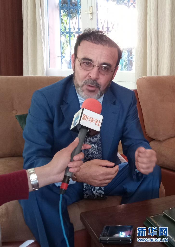 3月16日,摩洛哥真实性与现代党前总书记伊利亚斯·奥马里在拉巴特接受新华社记者专访(手机拍摄)。新华社发(纳加摄)