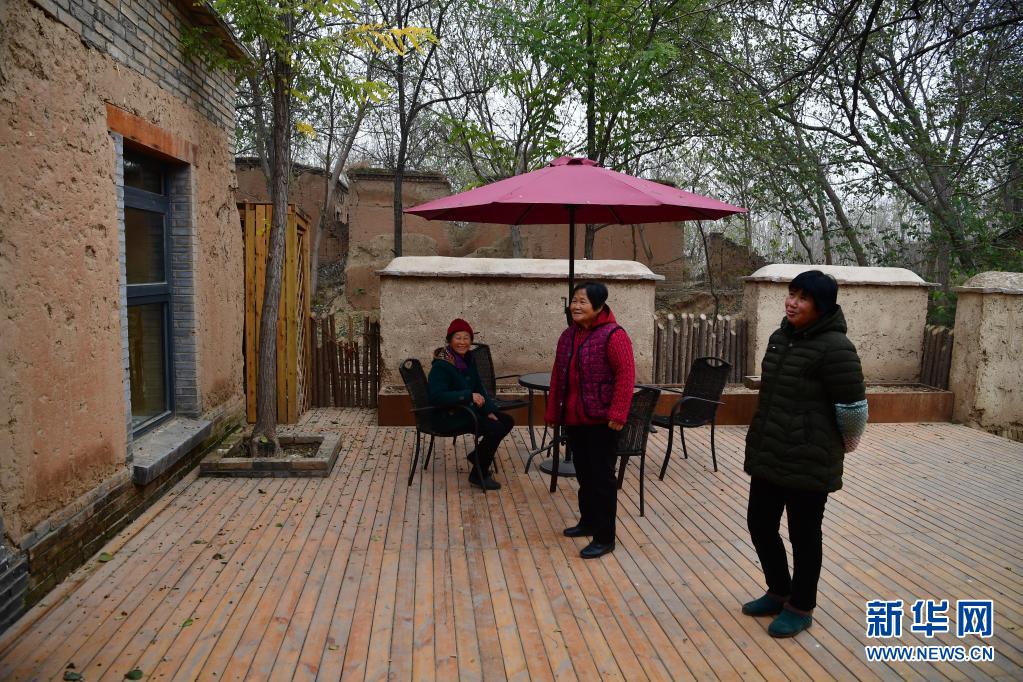 在河南省台前县夹河乡姜庄村,村民在土坯房改造的民宿参观(2018年11月27日摄)。新华社记者 冯大鹏 摄