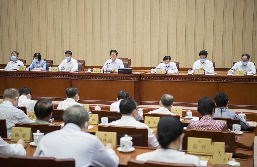6月10日,十三届全国人大常委会第二十九次会议在北京人民大会堂闭幕。栗战书委员长主持会议。新华社记者 李涛 摄