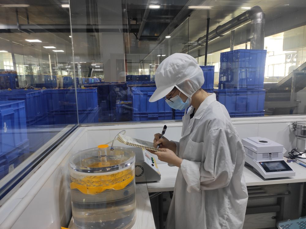 2021年7月19日,韦雪在螺蛳粉生产车间巡检。(受访者供图)