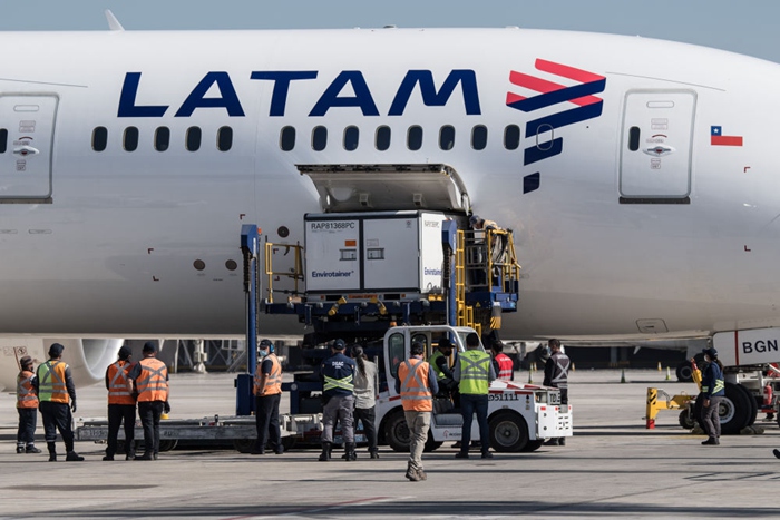 当地时间1月28日上午,首批近200万剂由中国科兴公司生产的新冠疫苗运抵智利首都圣地亚哥。新华社发(豪尔赫·比列加斯摄)