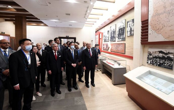 6月3日,阿拉伯国家驻华使节及阿盟驻华代表处代表等在西柏坡纪念馆参观。新华社记者 王晓 摄