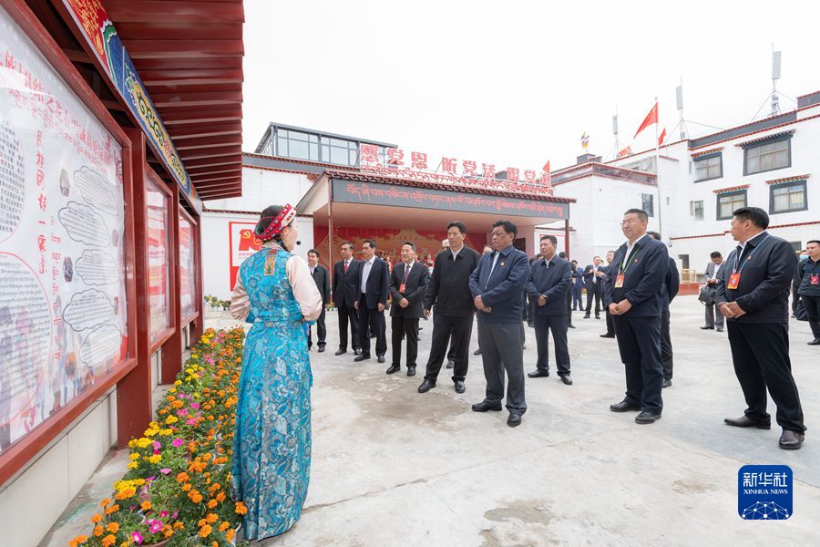 8月20日,中央代表团山南、日喀则分团带着以习近平同志为核心的党中央的深切关怀和全国人民的深情祝福,分别看望慰问当地各族各界干部群众。这是全国人大常委会副委员长、中央代表团副团长白玛赤林率日喀则分团来到日喀则桑珠孜区城北街道办事处江洛康萨社区,视察民族团结创建和新时代文明实践中心建设工作情况。新华社记者 翟健岚 摄