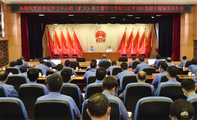 8月30日,最高人民检察院举行党组理论学习中心组(扩大)学习暨学习贯彻习近平法治思想专题辅导报告会。