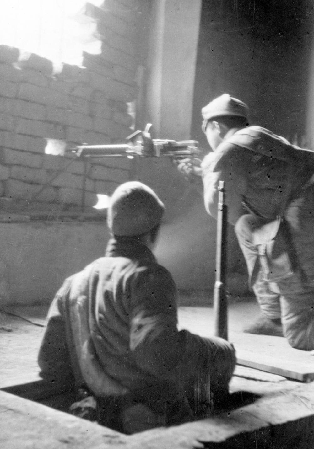 △这是平原地区的民兵正在地道里从一个射击口转移到另一个射击口去消灭敌人(资料照片)。新华社发