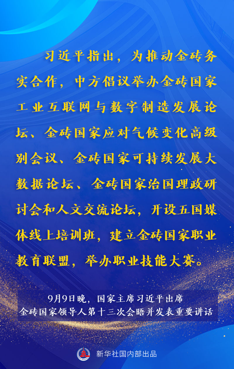 金砖国家领导人第十三次会晤9日晚以视频方式举行。国家主席习近平出席会晤并发表题为《携手金砖合作 应对共同挑战》的重要讲话。讲话有哪些主要内容,一起来看。