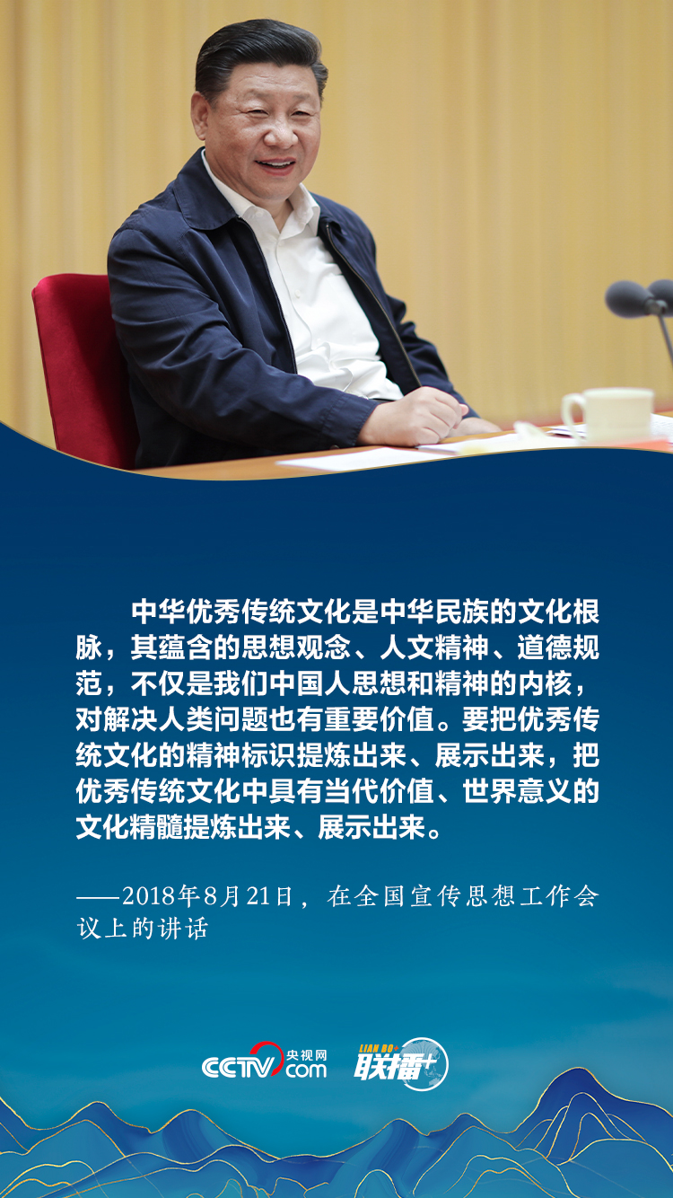 “中华优秀传统文化是中华民族的精神命脉,是涵养社会主义核心价值观的重要源泉,也是我们在世界文化激荡中站稳脚跟的坚实根基。”