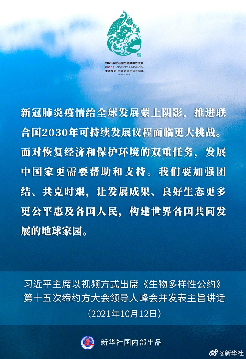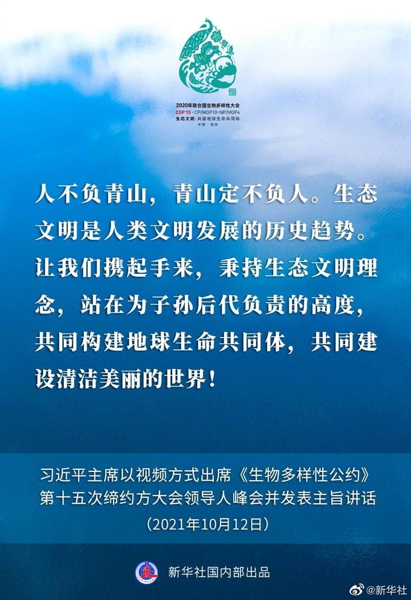 国家主席习近平12日下午以视频方式出席在昆明举行的《生物多样性公约》第十五次缔约方大会领导人峰会并发表主旨讲话。讲话有哪些主要内容,一起来看↓