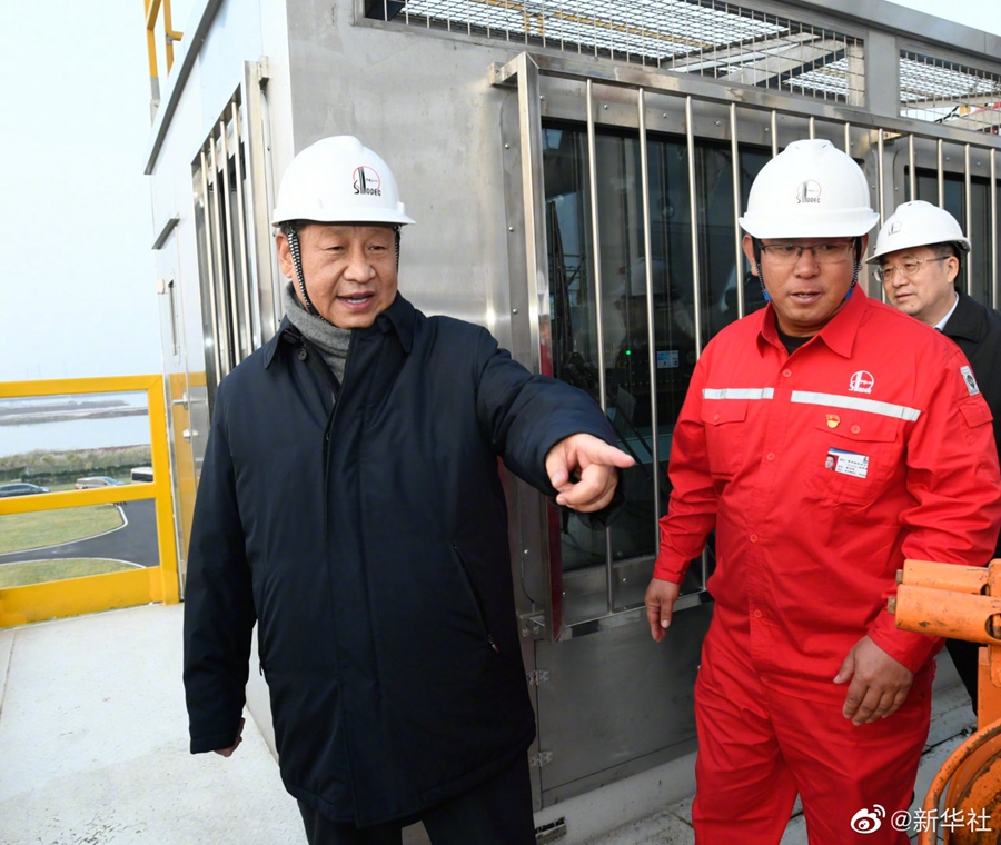 21日下午,习近平总书记来到胜利油田,登上钻井平台,察看作业情况,看望慰问石油工人。今年是胜利油田发现60周年。习近平代表党中央向广大石油职工致以诚挚问候。习近平指出,石油能源建设对我们国家意义重大,中国作为制造业大国,要发展实体经济,能源的饭碗必须端在自己手里。希望你们再创佳绩、再立新功。(记者:张晓松、朱基钗;摄影记者:李学仁、谢环驰、王晔)
