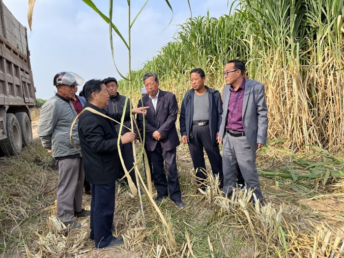 2021年10月,林占熺在宁夏石嘴山市宝丰村的丰收现场向老乡介绍菌草。林良辉摄