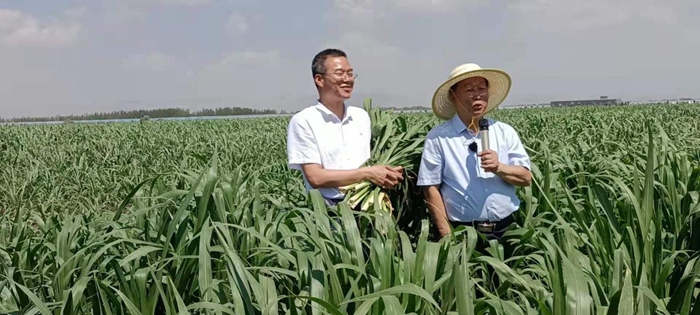 2021年7月,林占熺在宁夏菌草种植地向来宾介绍菌草技术。林良辉摄