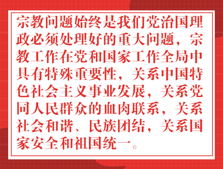 12月3日至4日,全国宗教工作会议在北京召开。中共中央总书记、国家主席、中央军委主席习近平出席会议并发表重要讲话。李克强、栗战书、汪洋、王沪宁、赵乐际、韩正出席会议。