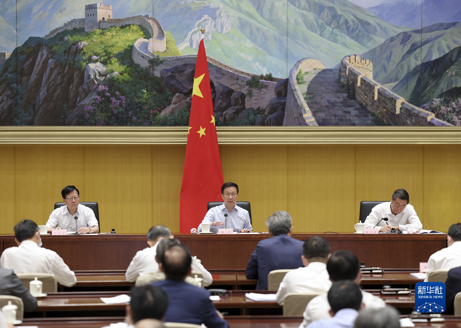 6月15日,中共中央政治局常委、国务院副总理韩正在北京出席迎峰度夏能源保供工作电视电话会议并讲话。新华社记者 丁海涛 摄
