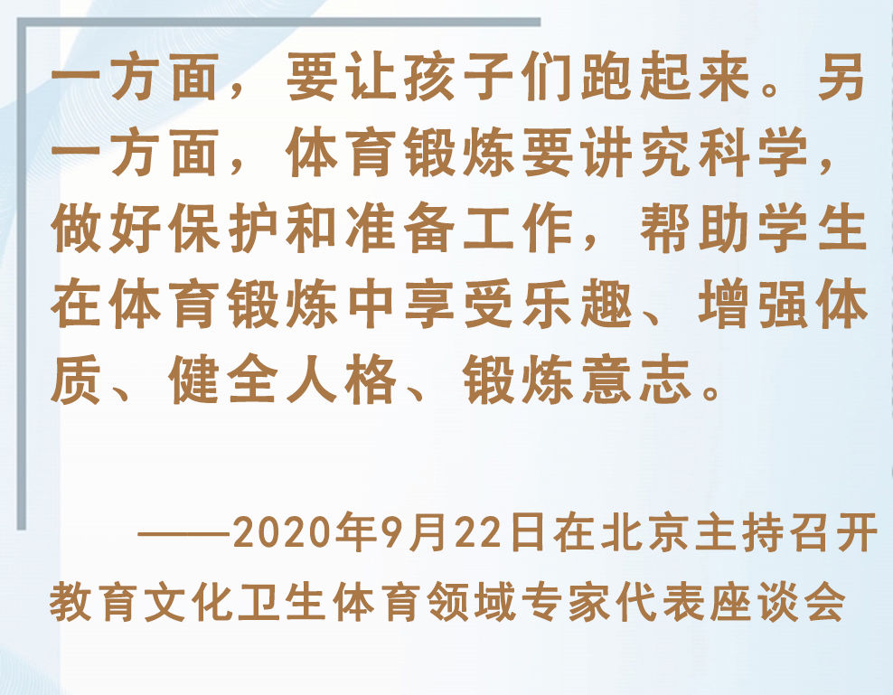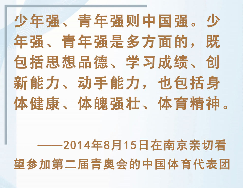 青少年是祖国的未来、民族的希望。强健的体魄是青少年成长成才的重要前提。对加强体育教育,增强青少年体质,习近平总书记念兹在兹。