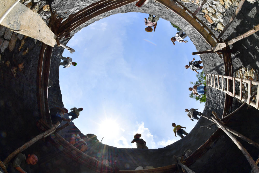 ↑2017年9月2日,在广西大化瑶族自治县板升乡弄勇村,人们在修建家庭水柜。广西因地制宜,加快实施农村饮水安全巩固提升工程。采取新建、扩建及管网延伸等多种措施,补齐贫困地区水利薄弱短板,进一步提升石漠化地区群众饮水安全保障水平。