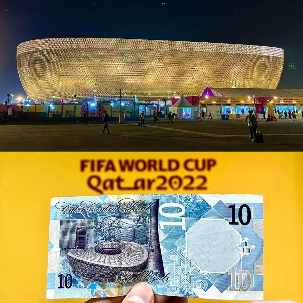 “中国建造”卢赛尔体育场是卡塔尔世界杯主体育场,被印上卡塔尔10里亚尔纸币。新华社记者王东震摄