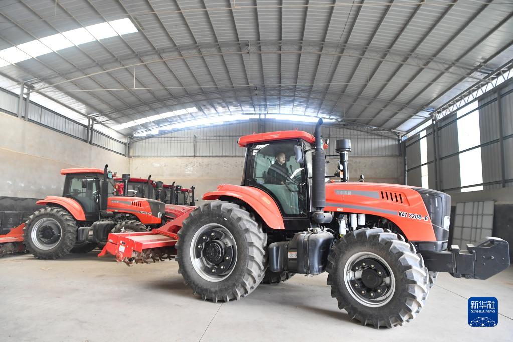 在陕西省宝鸡市陈仓区慕仪镇齐西村,齐昆在驾驶农用拖拉机(2023年2月27日摄)。新华社记者 张博文 摄