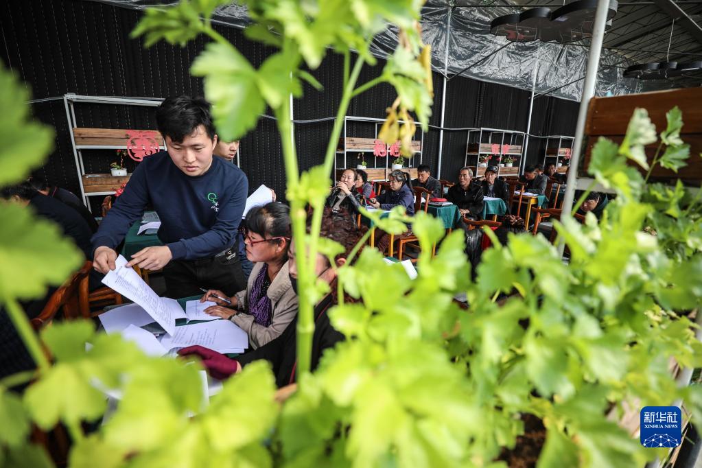 在辽宁省盘锦市大洼区田家街道大堡子村,回乡创业大学生郭佳明(前左)在培训课上回答农民提出的问题(2019年4月15日摄)。新华社记者 潘昱龙 摄