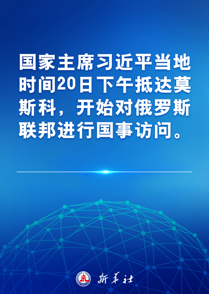 国家主席习近平当地时间20日下午抵达莫斯科,开始对俄罗斯联邦进行国事访问