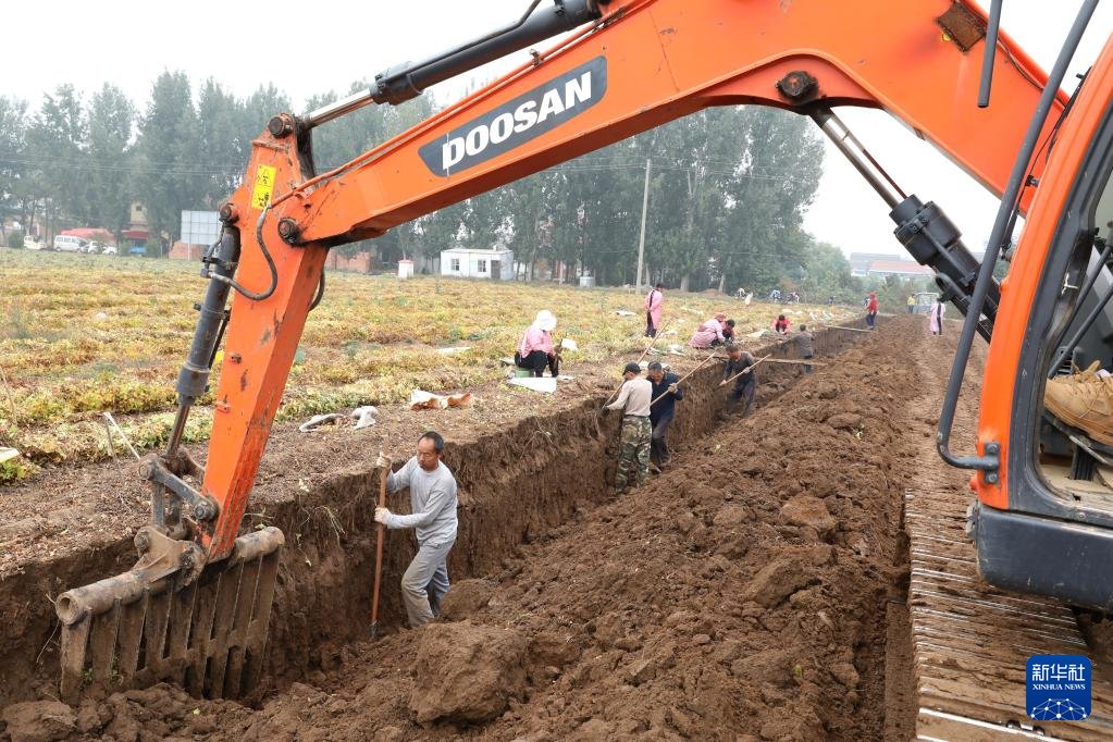 10月28日,河南省焦作市温县岳村街道赵郭作村农民在田间收获铁棍山药。