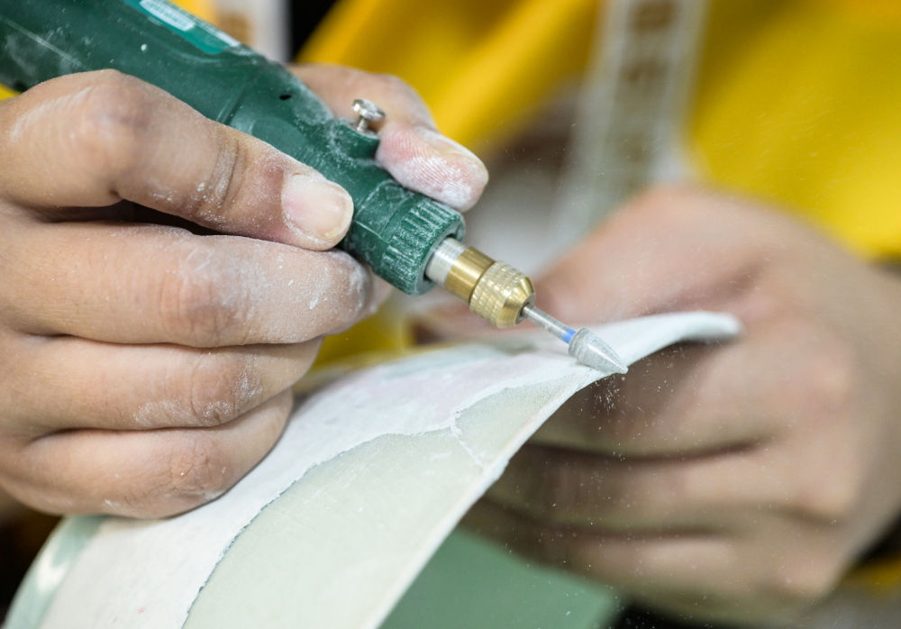 2025年7月5日,选手在赛场使用工具修复瓷器。