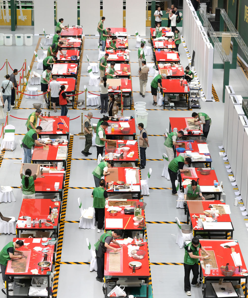 2025年7月4日,选手在纸张书画文物修复师赛区参加比赛。