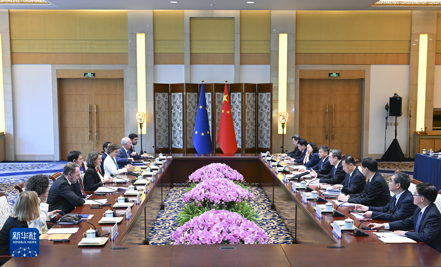 7月14日下午,中共中央政治局常委、国务院副总理丁薛祥在北京同欧盟委员会执行副主席里贝拉举行第六次中欧环境与气候高层对话。新华社记者 张领 摄