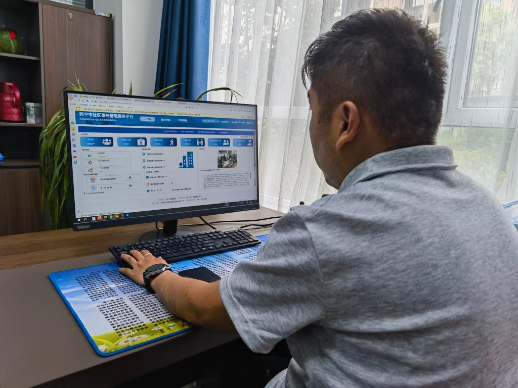 7月7日,青海省西宁市城中区南川西路街道安宁路社区工作人员正在操作社区事务管理服务平台。新华社记者 柳泽兴 摄