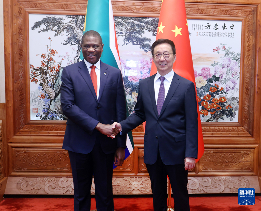韩正表示,去年9月,习近平主席同拉马福萨总统成功会晤,共同宣布将两国关系提升为新时代全方位战略合作伙伴关系,开启了构建高水平中南命运共同体的新篇章。前年,我同副总统先生共同主持召开中南国家双边委员会第八次全体会议,推动两国各领域合作取得广泛成果。双方要进一步落实好两国元首达成的重要共识,不断增进政治互信,推动双边合作高质量发展,服务各自现代化事业。