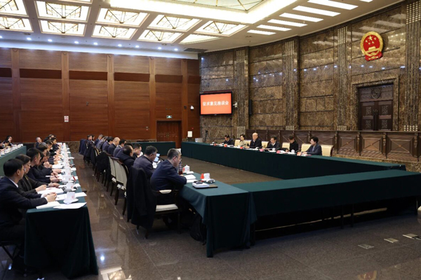 最高法党组副书记、分管日常工作的副院长邓修明,副院长陶凯元,党组成员、副院长高晓力,审判委员会专职委员刘贵祥、王淑梅,有关单位负责同志参加座谈。(记者:白龙飞 | 摄影:孙若丰)