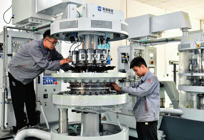 在位于山东省嘉祥县的山东联峰精密科技有限公司,工作人员在组装精密机床(2025年6月6日摄)。郭绪雷摄/本刊