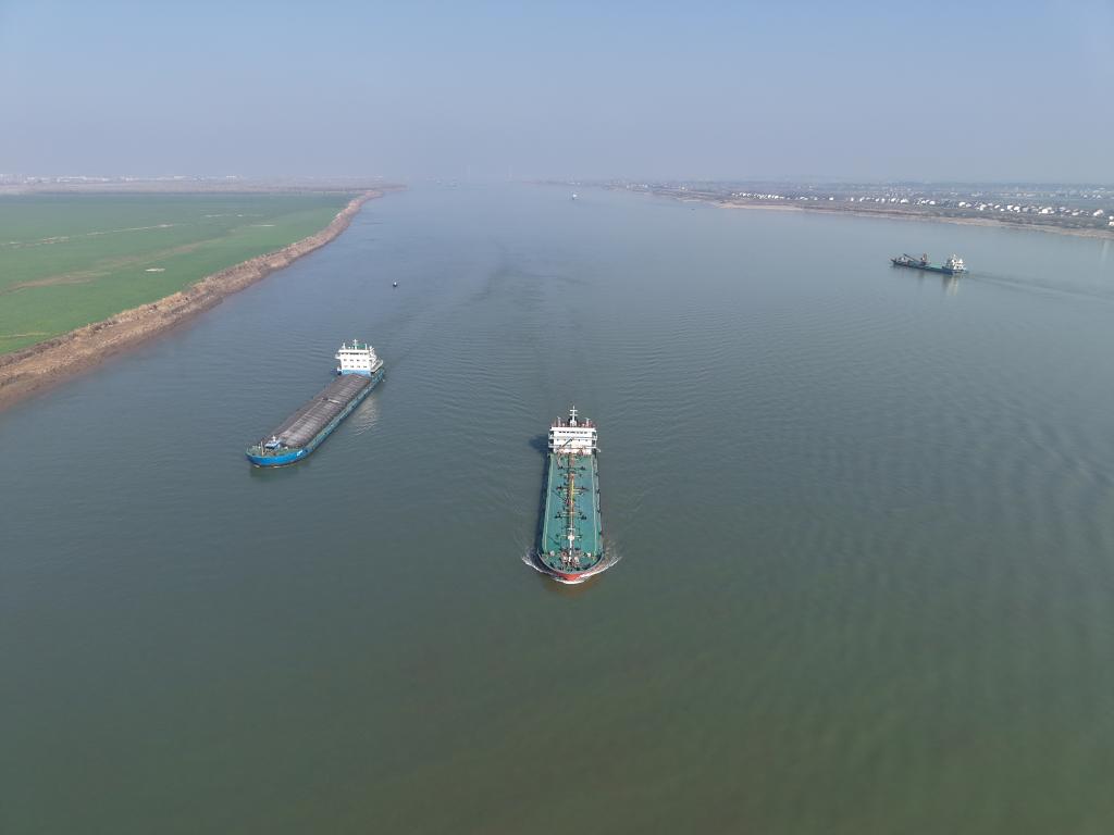 这是在湖南省临湘市江南镇长江村拍摄的长江(无人机照片)。新华社记者丁春雨 摄