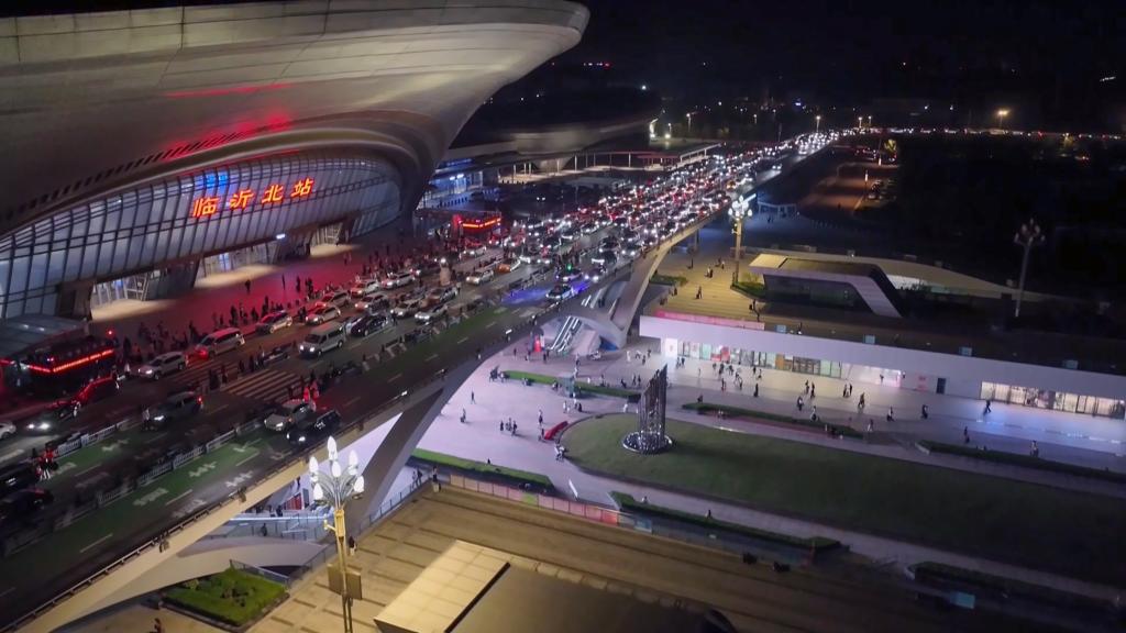 夜幕下的临沂北站。(受访单位供图)