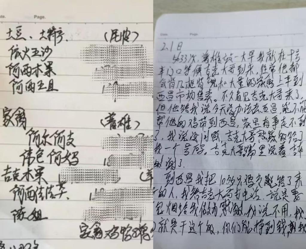 吉布日哈掏出一个手账本,上面写着:“土豆,土特产,尼波站,依火五沙、阿西木果、阿西五且;家禽,普雄站,阿尔阿支、伟色阿妈;羊,吉克木果……”