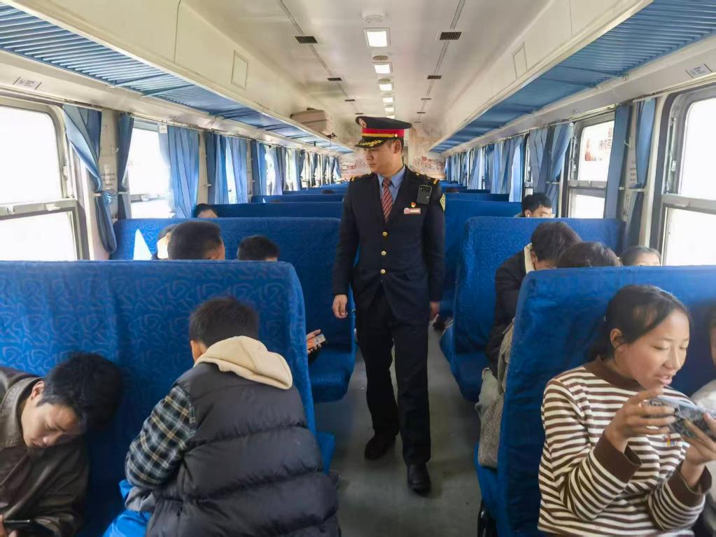 吉布日哈在5633次“慢火车”上。受访者供图