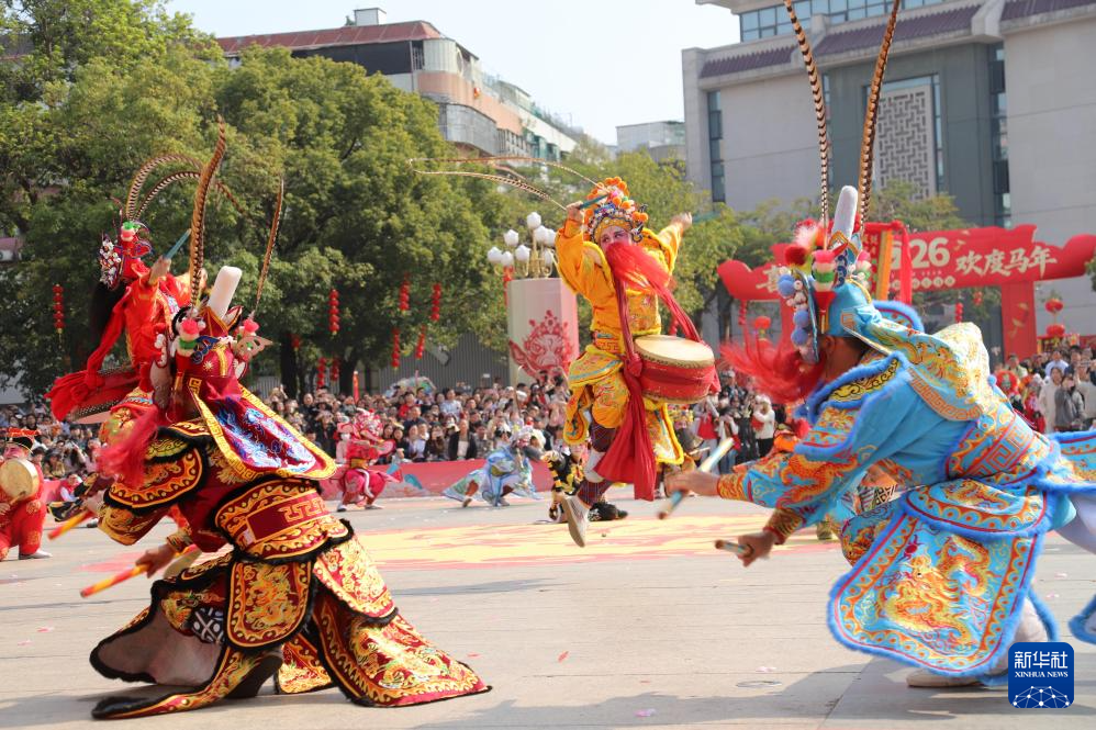2月21日,英歌队在广东汕头潮阳区“2026年春节潮阳英歌嘉年华活动”中表演。