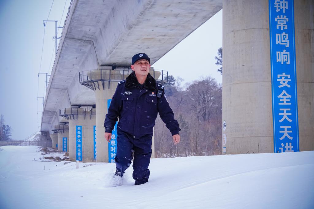 茫茫长白林海,冬季严寒漫长。长白山西站派出所副所长梁玮哲介绍,在风雪中巡查辖区76公里长的高铁线路,已成为民警们的日常。线路巡查东西跨度大,从辖区最西端的东山隧道,到最东端的路水河林场二号大桥,民警驾车走一趟,就要一天时间。因线路长、积雪厚,有不少路段车辆无法抵达,民警只能下车徒步巡线。