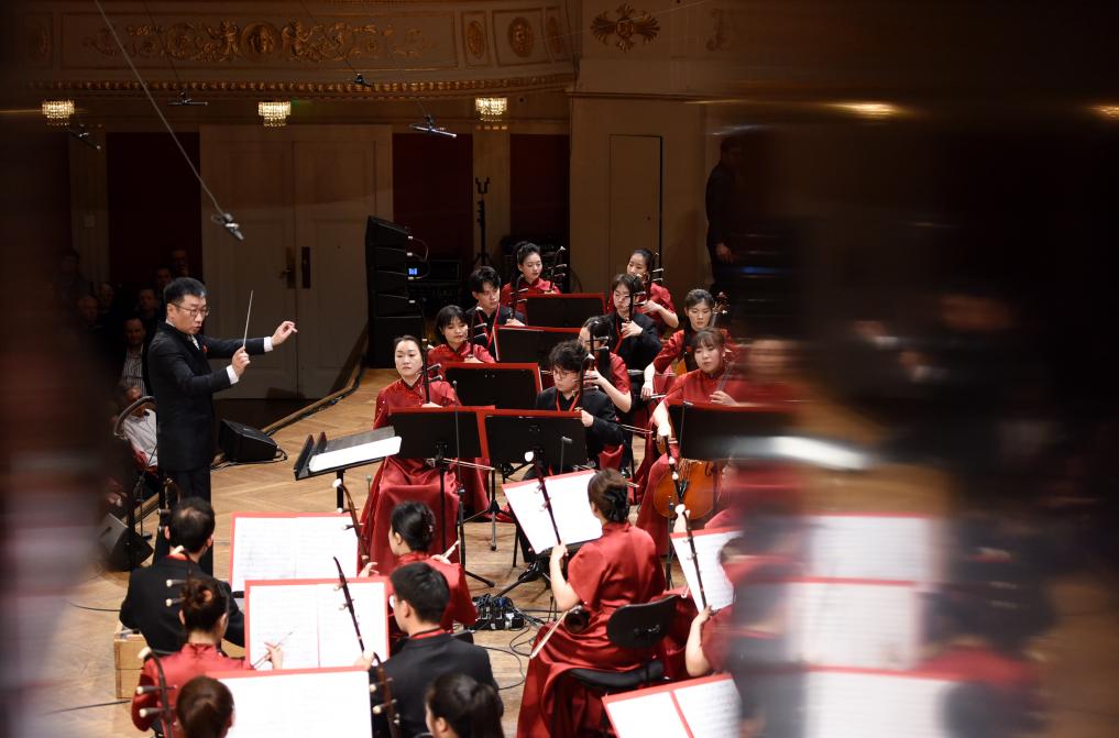 2025年2月2日,在奥地利维也纳,指挥家李心草在中国音乐学院新春音乐会上指挥。新华社记者 贺灿铃 摄